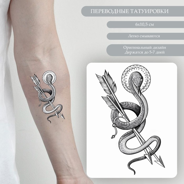 Переводная тату на тело чёрная «Змей со стрелами», 10.5×6 см