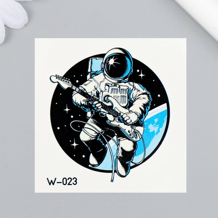 Переводная тату на тело цветная «Гитарист из космоса», временная татуировка, 6×6 см