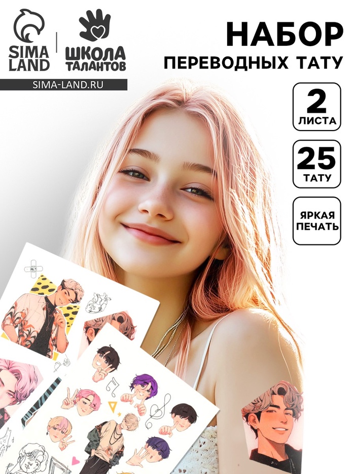 Переводные татуировки детские «Корейские парни», тату — 2 листа