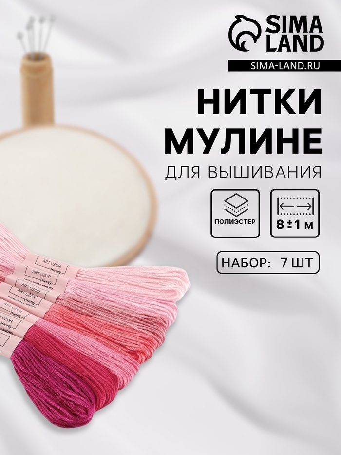 Нитки мулине, 8±1 м, набор 7 шт., розовые