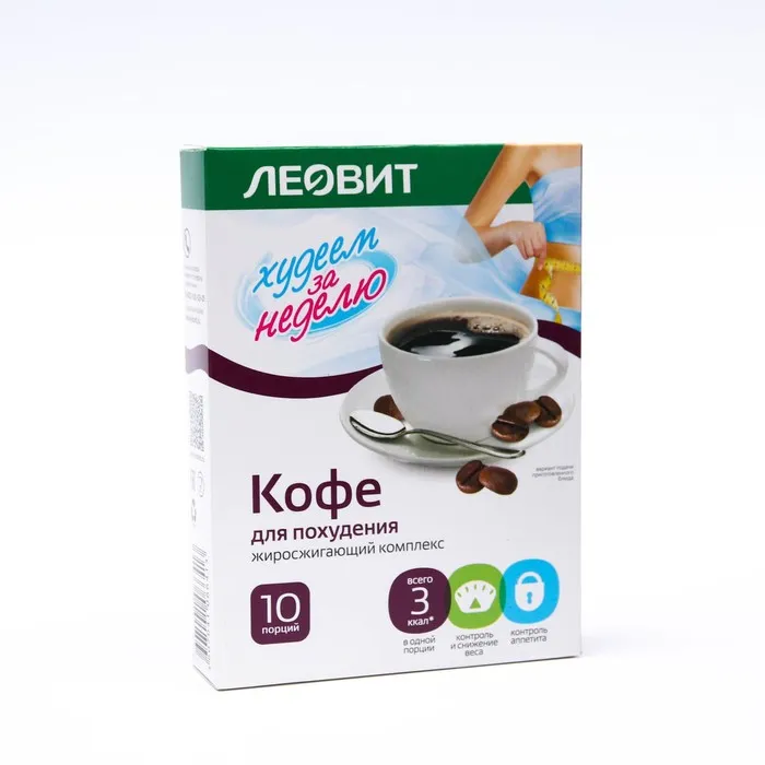 Кофе для похудения Леовит "Жиросжигающий комплекс", 10 пакетов по 3 г