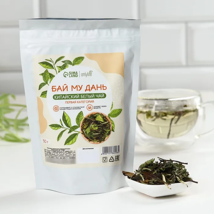 Чай Бай Му Дань, спокойствие и ускорение обмена веществ , 50 г.