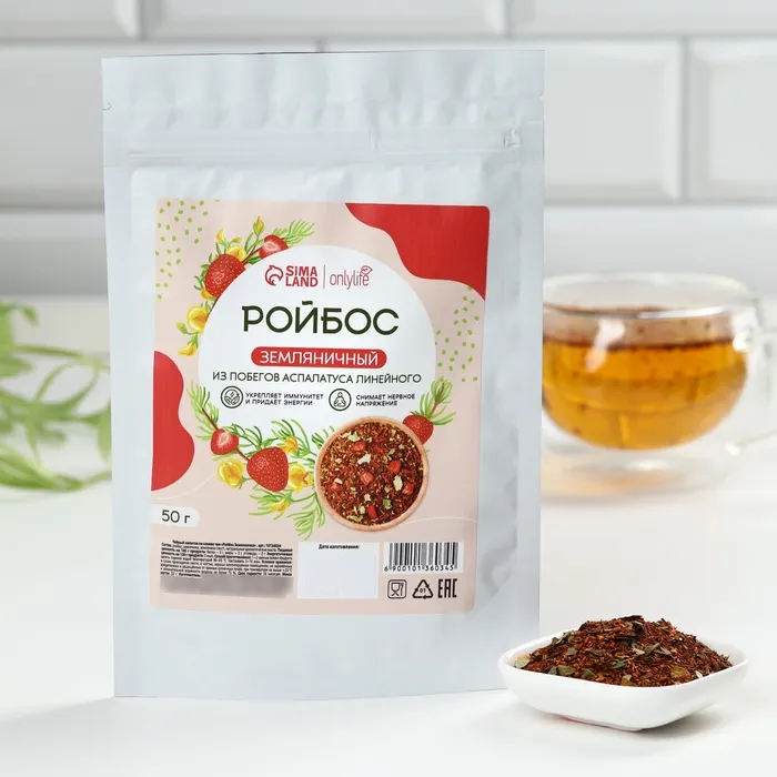 Чай китайский Ройбос - Ройбуш с земляникой, спокойствие и укрепление иммунитета, 50 г.