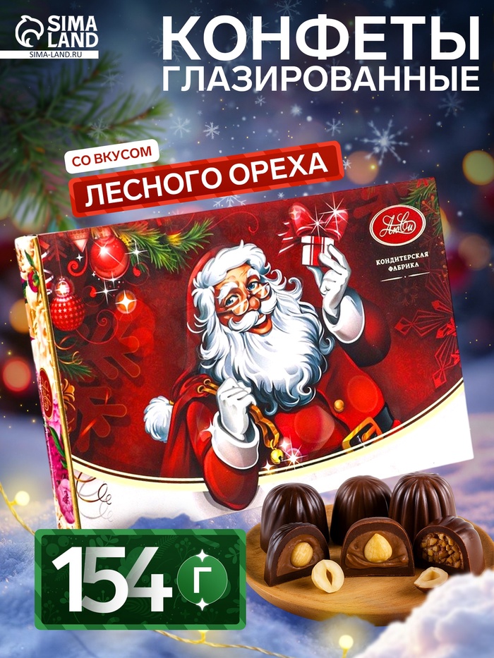Конфеты шоколадные «Дед Мороз», ассорти с лесным орехом, 154 г