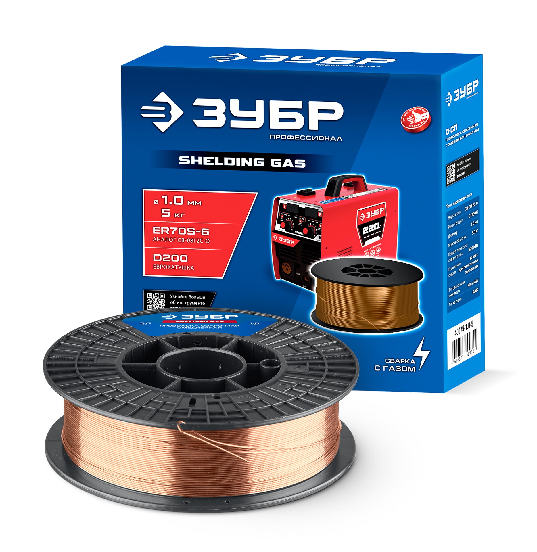 ЗУБР О-СП, d 1.0 мм, 5 кг, омеднённая сварочная проволока, тип ER70S-6 (аналог Св-08Г2С-О), Профессионал (40075-1.0-5)