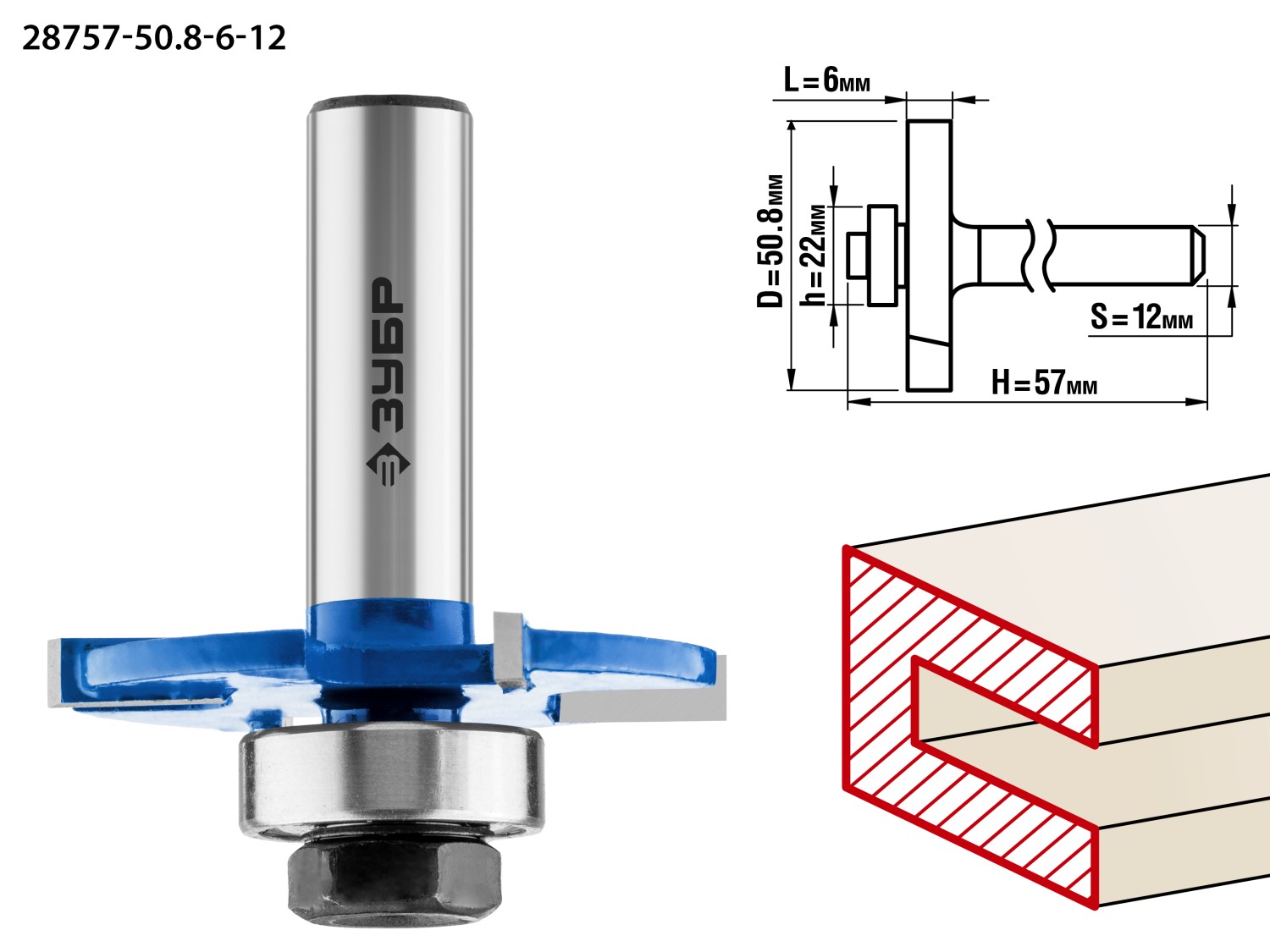 ЗУБР 50.8 x 6 мм, хвостовик 12 мм, фреза горизонтально-пазовая, Профессионал (28757-50.8-6-12)