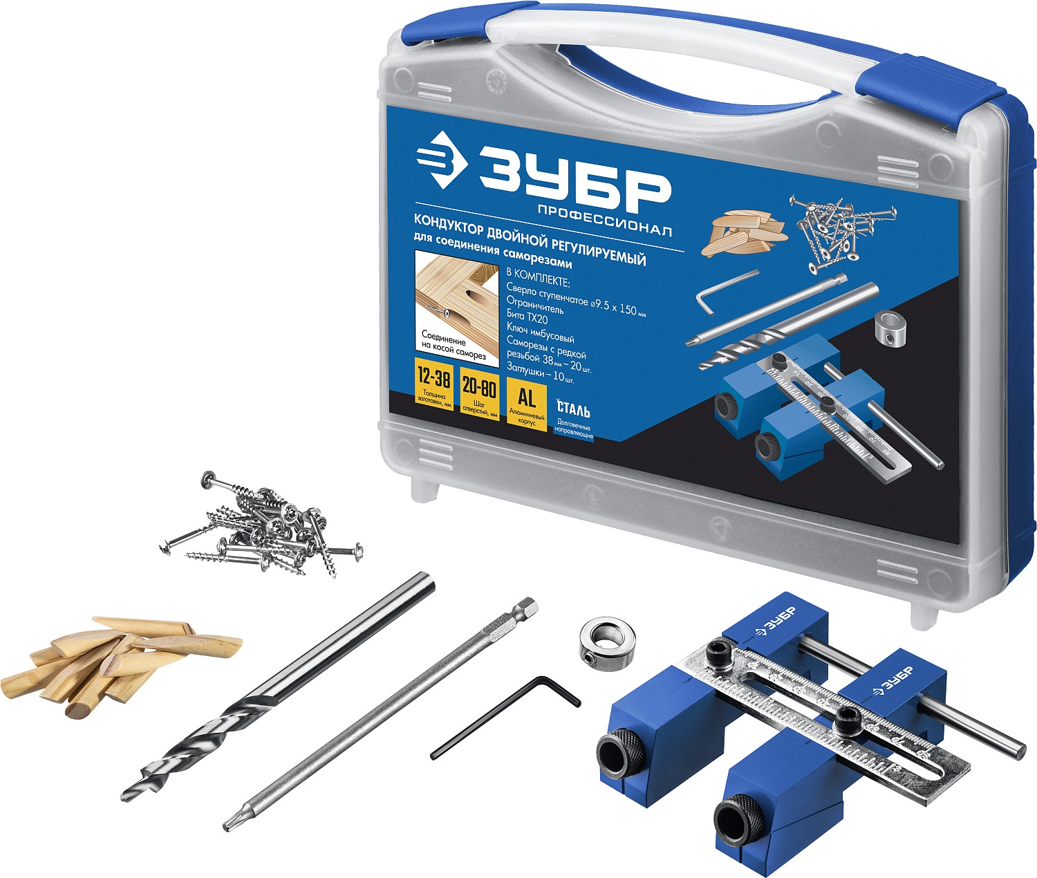 ЗУБР два отверстия, регулируемый кондуктор для глухих отверстий, Профессионал (30081)