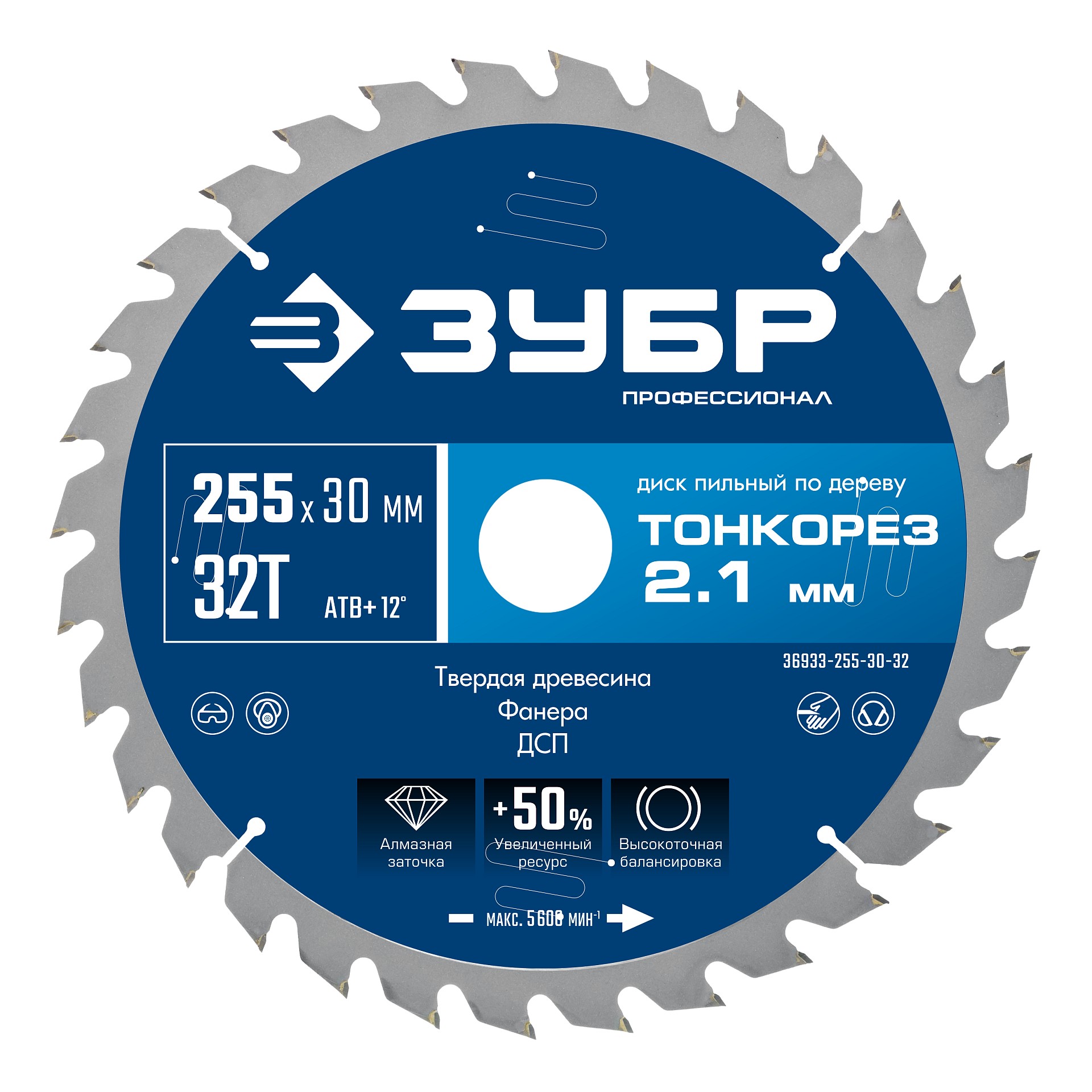ЗУБР Тонкорез 255х30 x 2.1 мм, 32Т, диск пильный по дереву тонкий рез, Профессионал (36933-255-30-32)