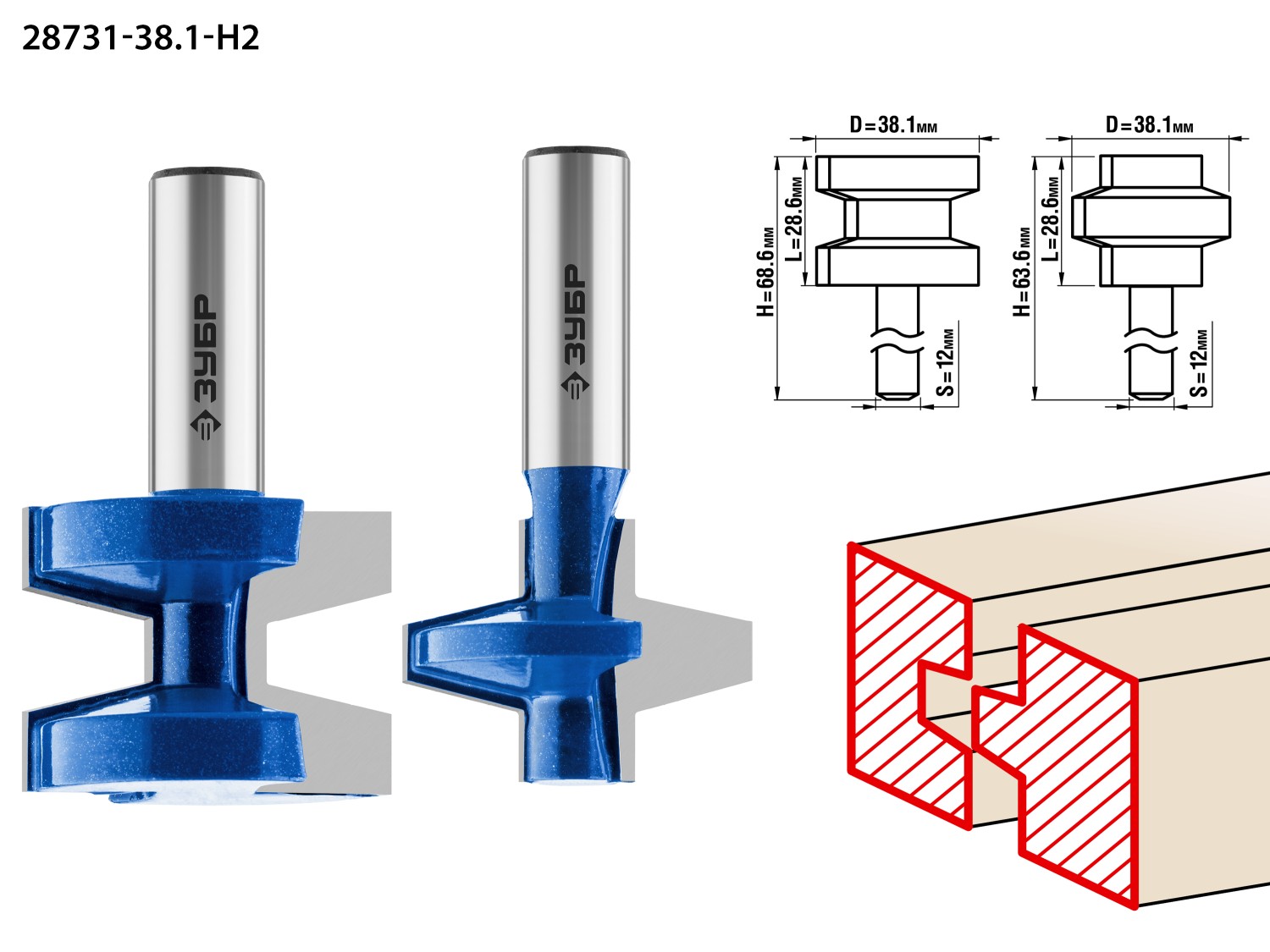 ЗУБР 38.1 x 28.6 мм, хвостовик 12 мм, набор фрез пазо-шиповых, Профессионал (28731-38.1-H2)