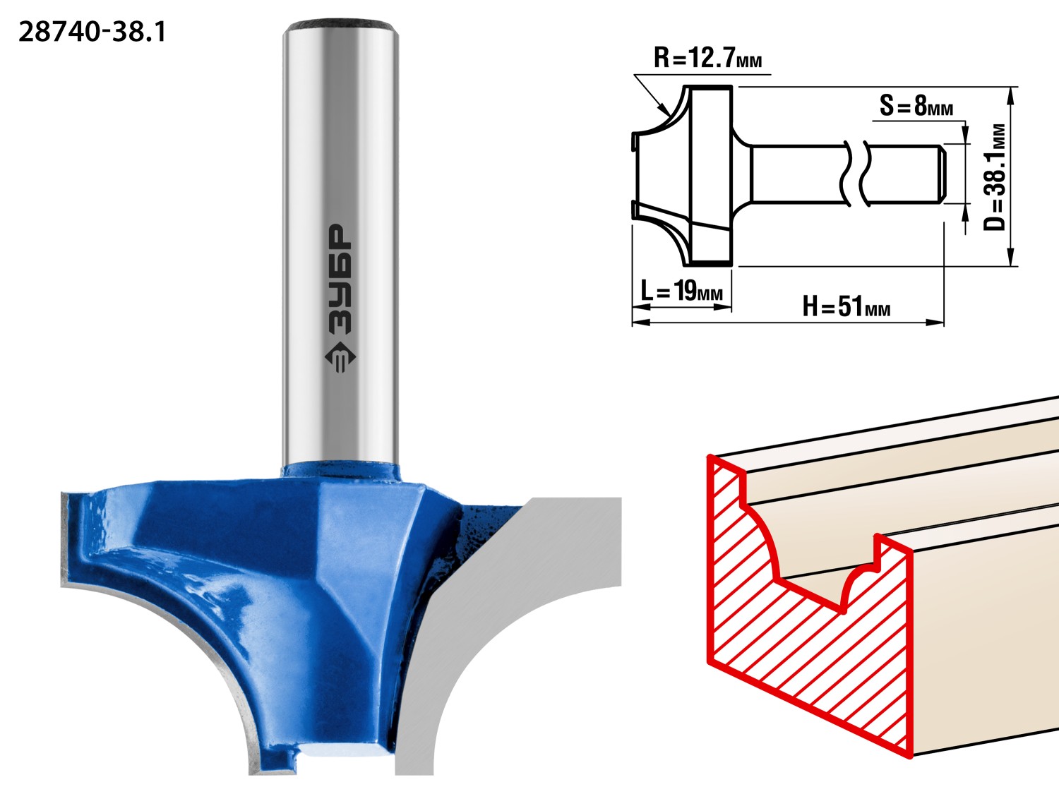 ЗУБР 38.1 x 19 мм, радиус 12.7 мм, фреза пазовая фасонная №1, Профессионал (28740-38.1)