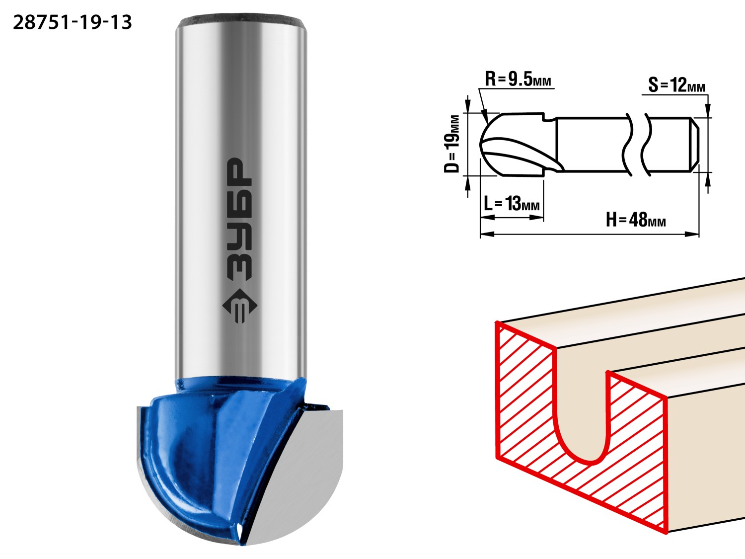 ЗУБР 19 x 13 мм, радиус 9.5 мм, фреза пазовая галтельная, Профессионал (28751-19-13)