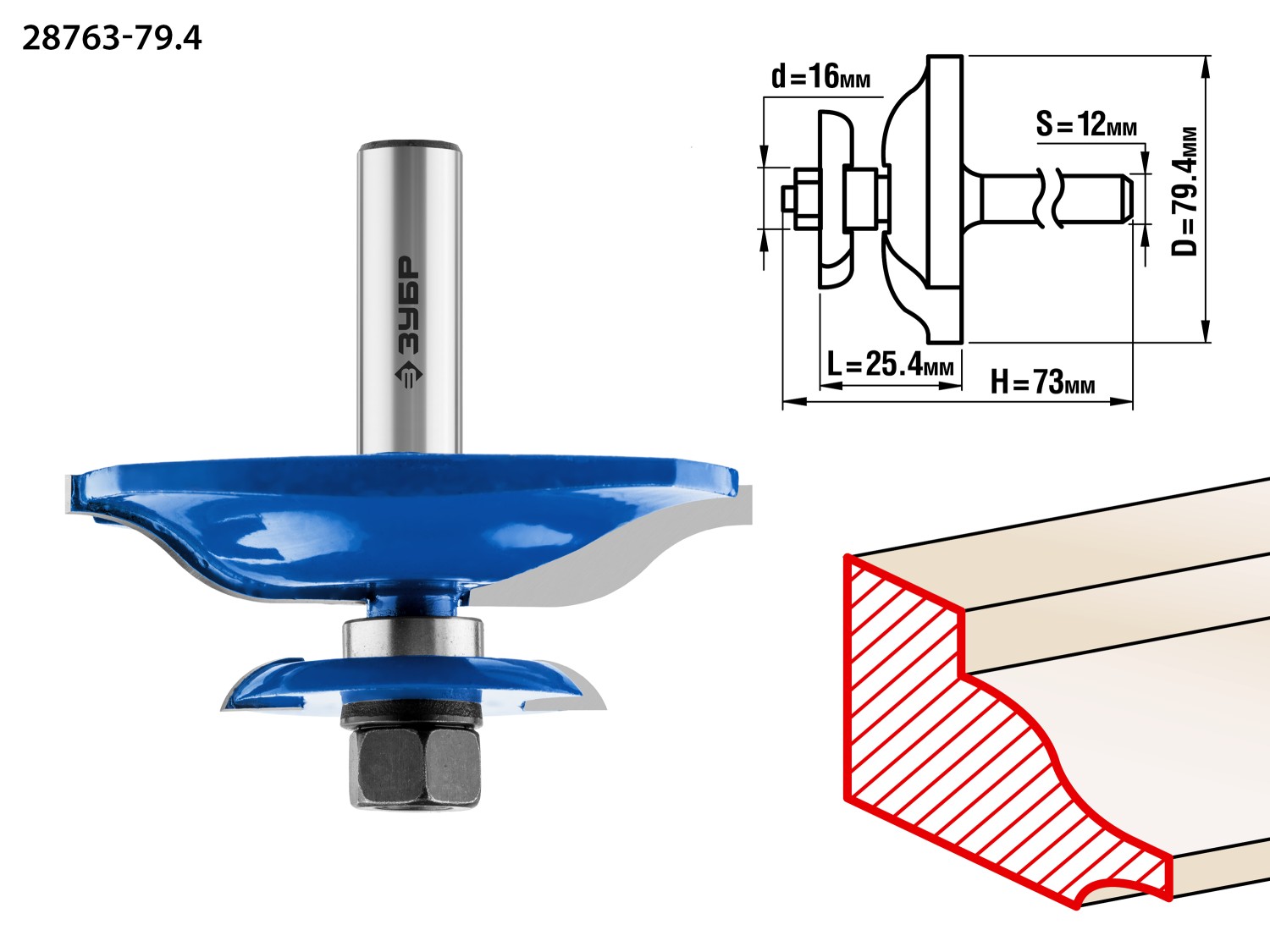 ЗУБР 79.4 x 25.4 мм, хвостовик 12 мм, фреза фигирейная двухсторонняя, Профессионал (28763-79.4)