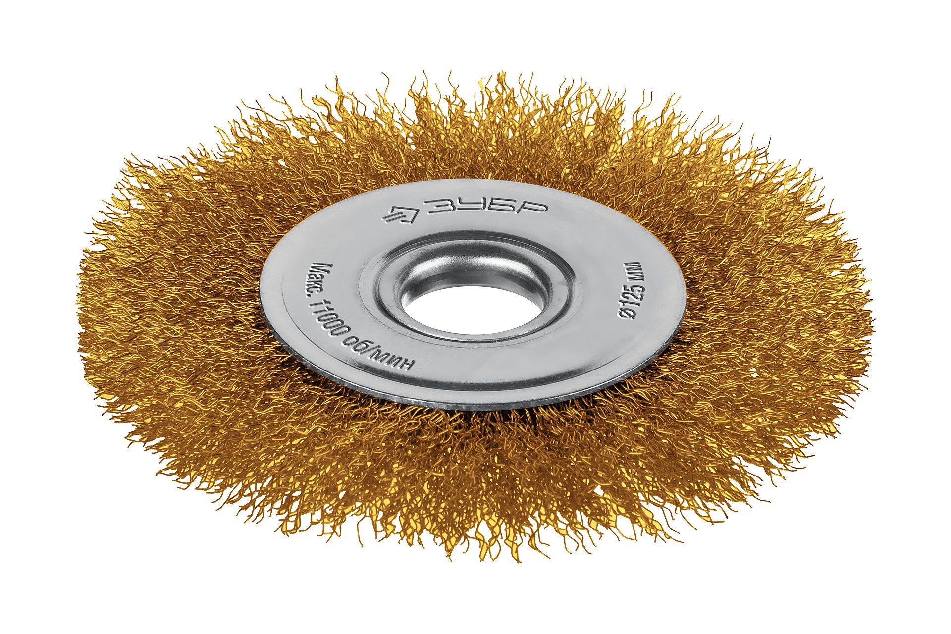 ЗУБР 125х22 мм щетка дисковая для УШМ, витая стальная латунированная проволока 0.3 мм, посад. 22 мм (35171-125)