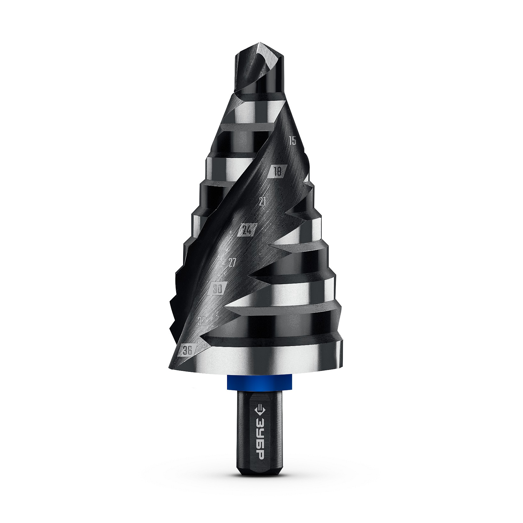 ЗУБР BLACK FORCE 9-36мм, 10 ступеней, винтовая проточка, сверло ступенчатое, ПРОФЕССИОНАЛ (29671-9-36-10)