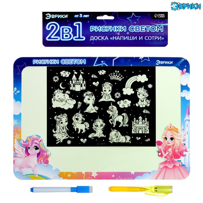 Набор для рисования светом «Принцессы» + доска напиши и сотри, ручка с фонариком, маркер