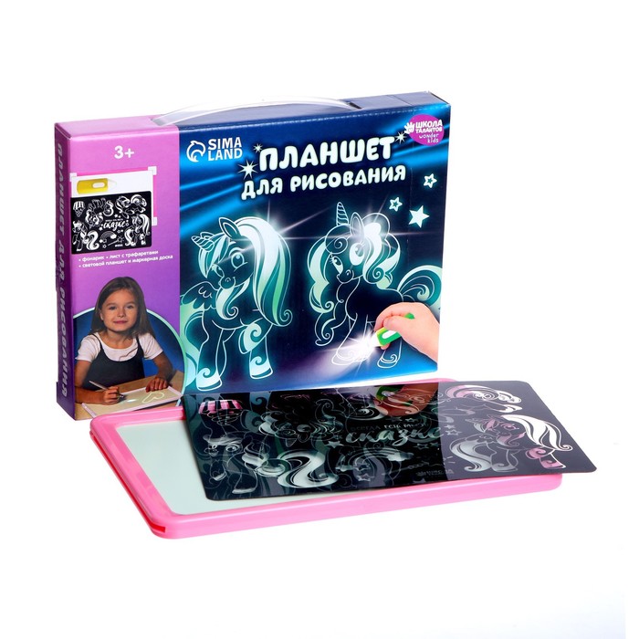 Набор для рисования светом «Пони», с наклейками и раскраской, ручка с фонариком и невидимыми чернилами