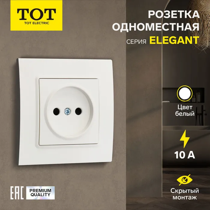 Розетка одноместная TOT Elegant, 10 А, скрытая, без з/к, белая