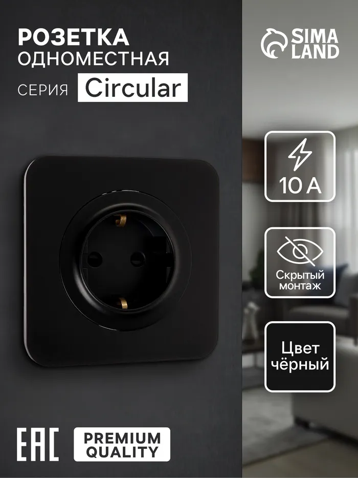 Розетка одноместная, серия Circular, 16 А, скрытый монтаж, с заземлением, чёрная