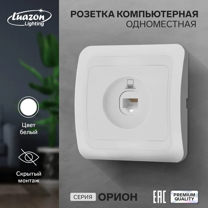 Розетка компьютерная одноместная Luazon Lighting "Орион", скрытая, белая
