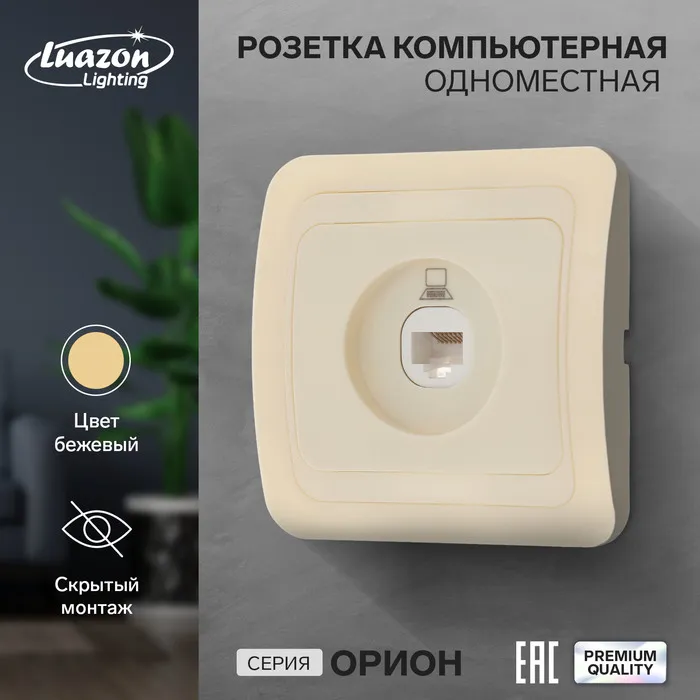 Розетка компьютерная одноместная Luazon Lighting "Орион", скрытая, бежевая