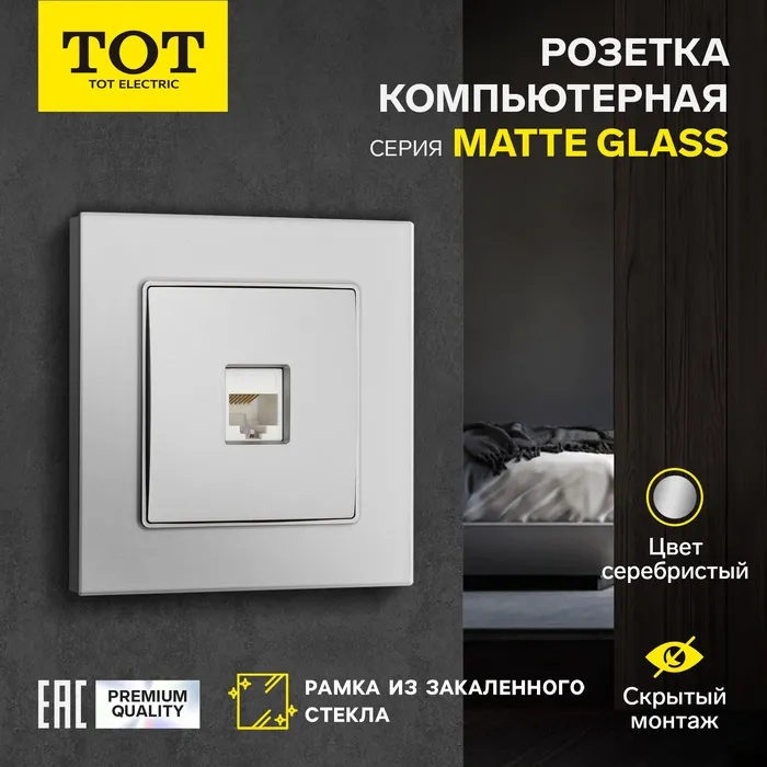 Розетка компьютерная одноместная TOT Matte Glass, скрытая, стекло, серебристая
