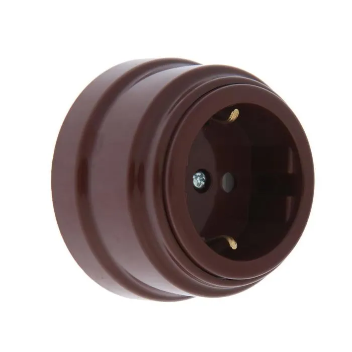 Розетка BYLECTRICA Ретро РА16-0202, 16 А, одноместная, наружняя, с заземлением, без крышки, IP20, коричневая