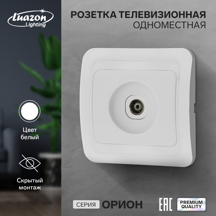 Розетка телевизионная одноместная Luazon Lighting "Орион", скрытая, белая