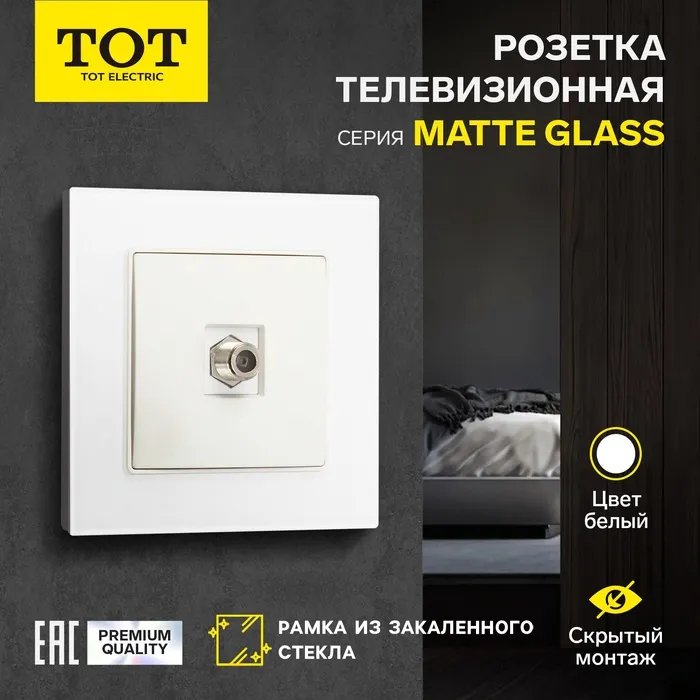 Розетка телевизионная одноместная TOT Matte Glass, скрытая, стекло, белая