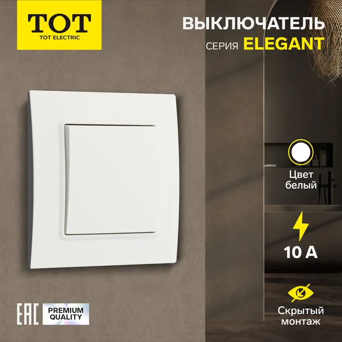 Выключатель TOT Elegant, 10 А, 1 кл., скрытый, белый