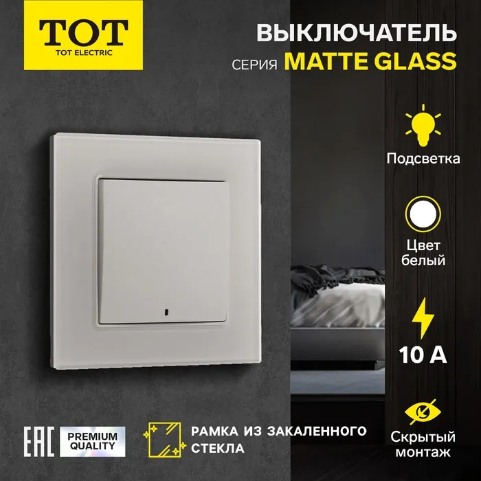 Выключатель TOT Matte Glass, 10 А, 1 кл., с подсветкой, скрытый, стекло, белый