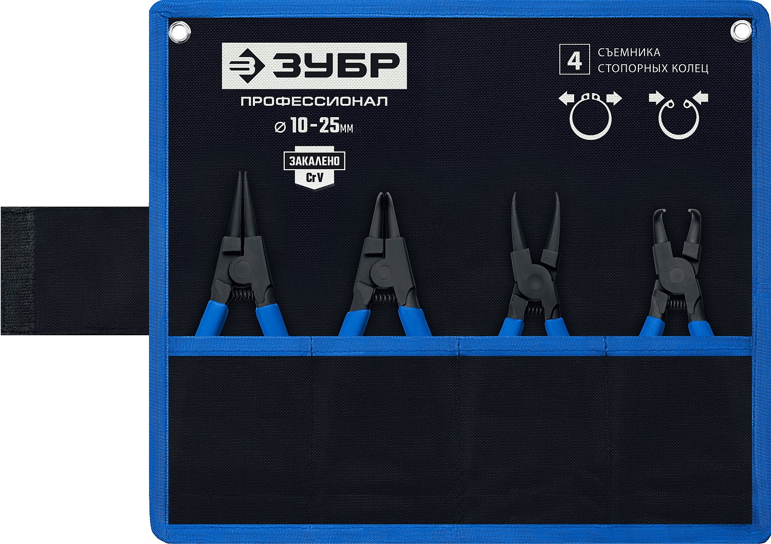ЗУБР 4 шт, 130 мм, набор съемников стопорных колец, Профессионал (22825)