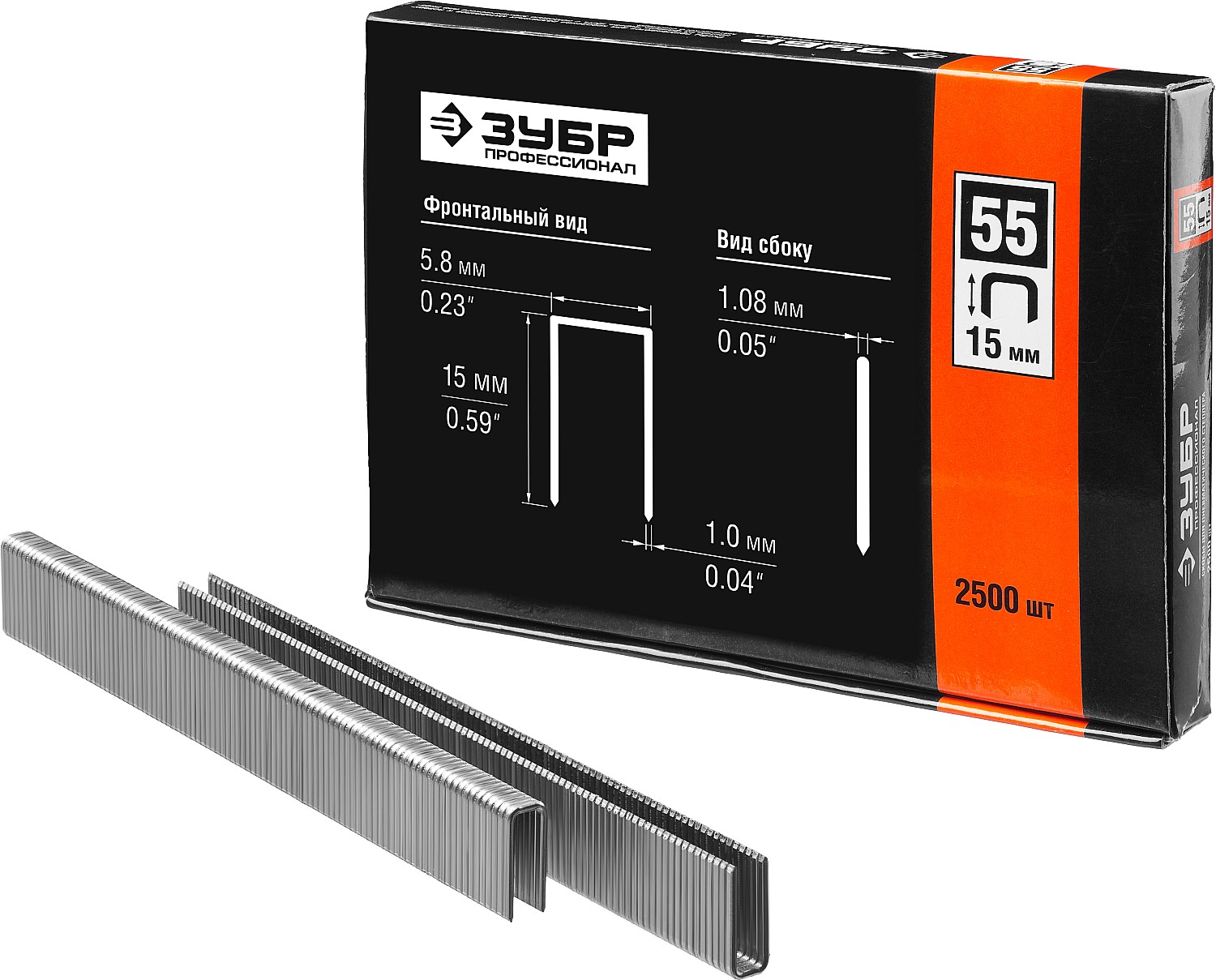 ЗУБР тип 18GA (55/90/C) 15 мм, 2500 шт, скобы для степлера, Профессионал (31855-15)