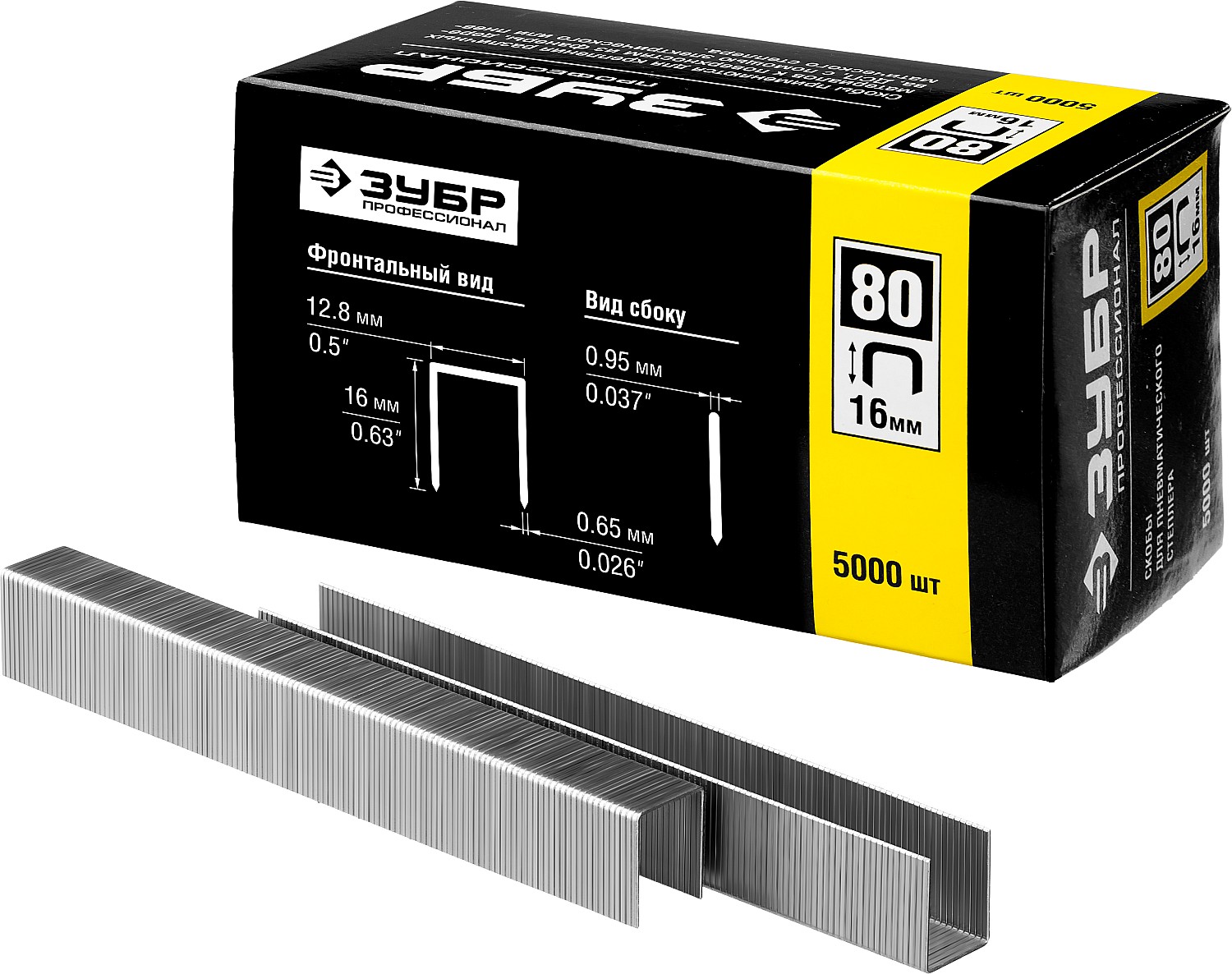ЗУБР тип 21GA (80/Pr A/Senco AT) 16 мм, 5000 шт, скобы для степлера, Профессионал (31880-16)