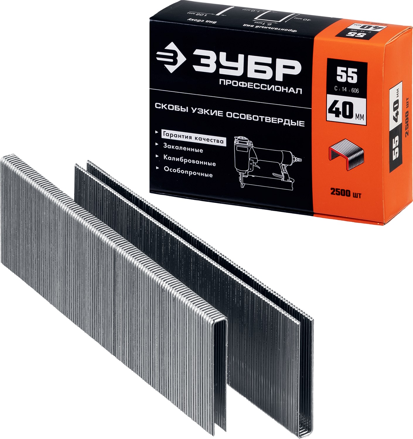 ЗУБР тип 18GA (55/90/C) 40 мм, 2500 шт, скобы для степлера, Профессионал (31855-40)