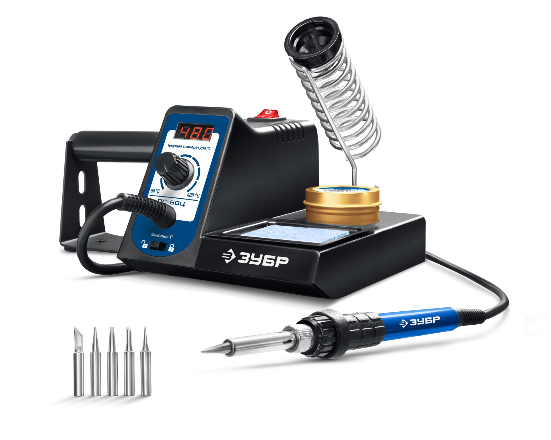 ЗУБР ПСН-60, 60 Вт, 50 - 480°C, керамический нагреватель, низкотемпературная паяльная станция цифровая, Профессионал (55336)
