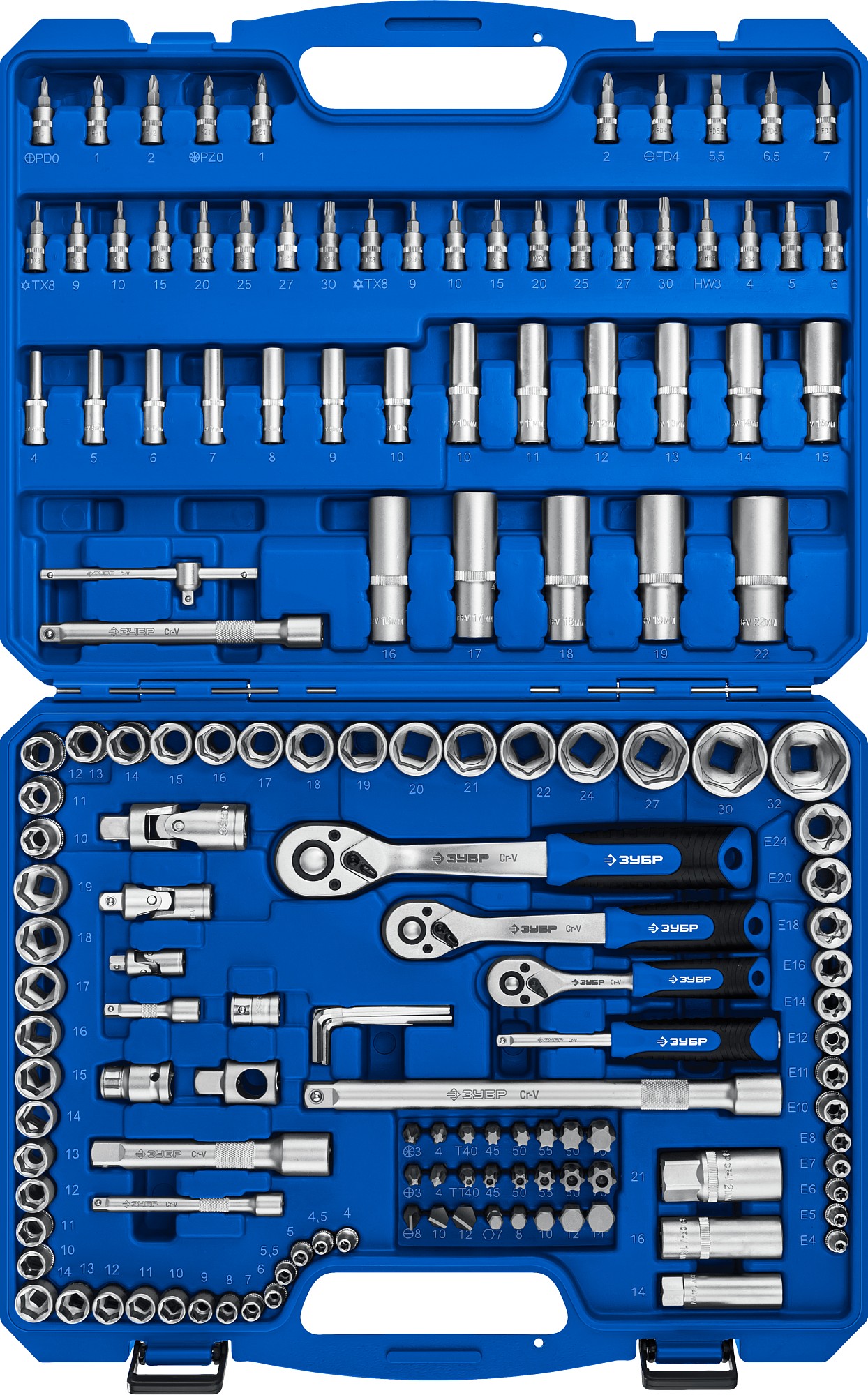 ЗУБР А-22, 22 предм., (1/2″), универсальный набор инструмента, Профессионал (27632-H22)