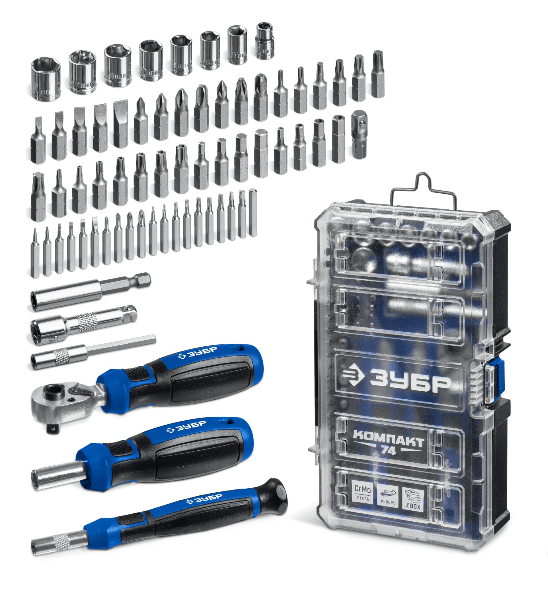ЗУБР Компакт 74 предм., система стыковки Z-БОКС, универсальный набор инструмента, Профессионал (25283)