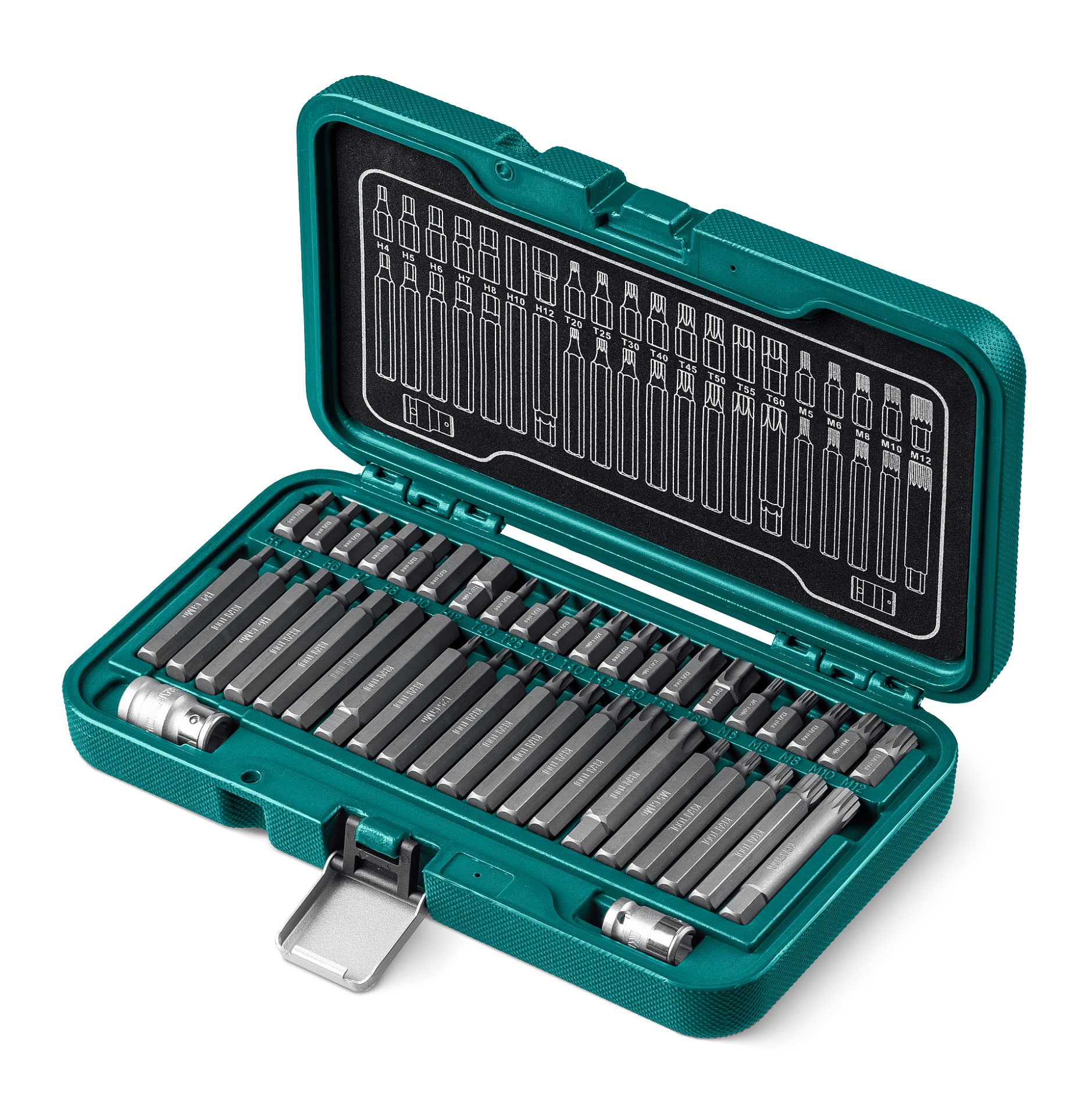 KRAFTOOL THS-42, 42 шт (HEX, TX, SPLINE) хвостовик 10 мм под квадрат 1/2″ набор специальных бит (26554)