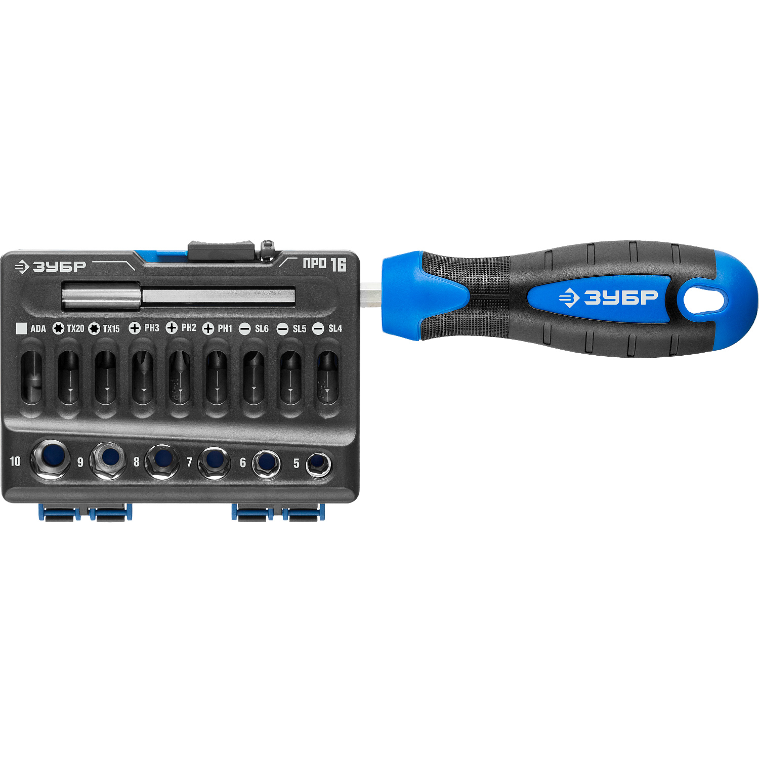 ЗУБР отвертка-битодержатель с насадками, Профессионал (25216)