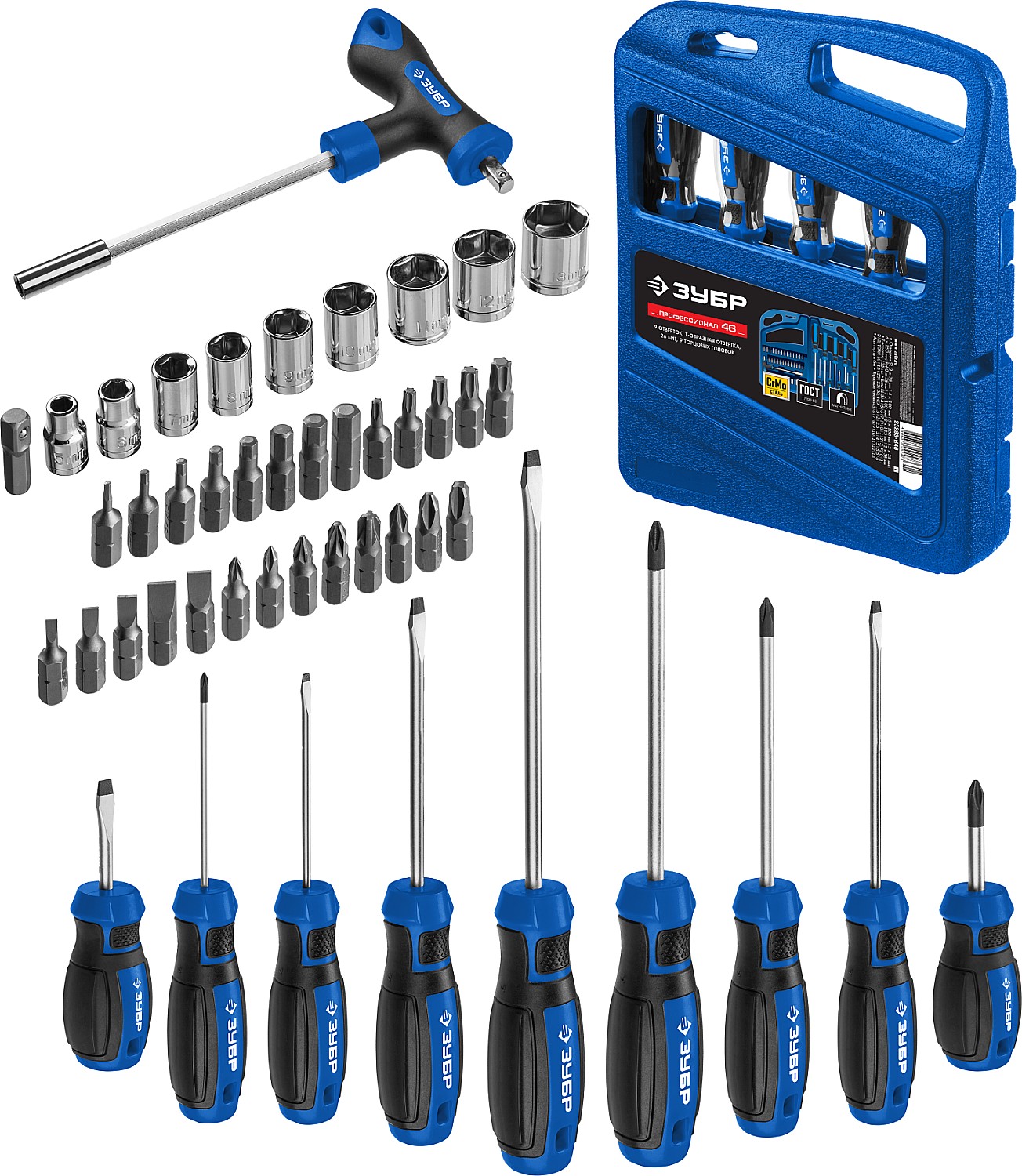 ЗУБР Профессионал 46 шт, набор отверток с насадками (25283-H46)