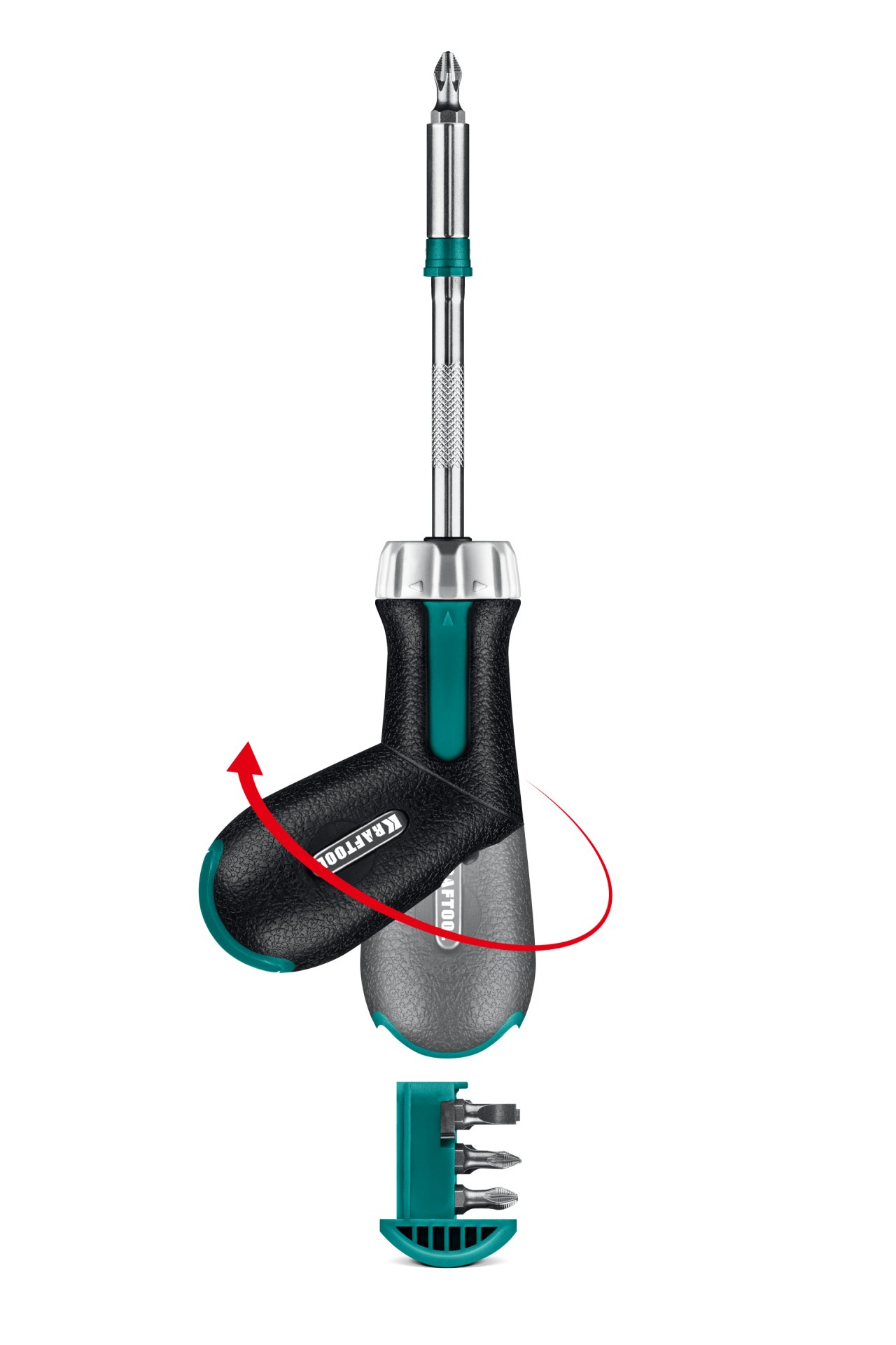 KRAFTOOL EXTREM набор: рычажная реверсивная отвертка с битами 6 шт (25899)