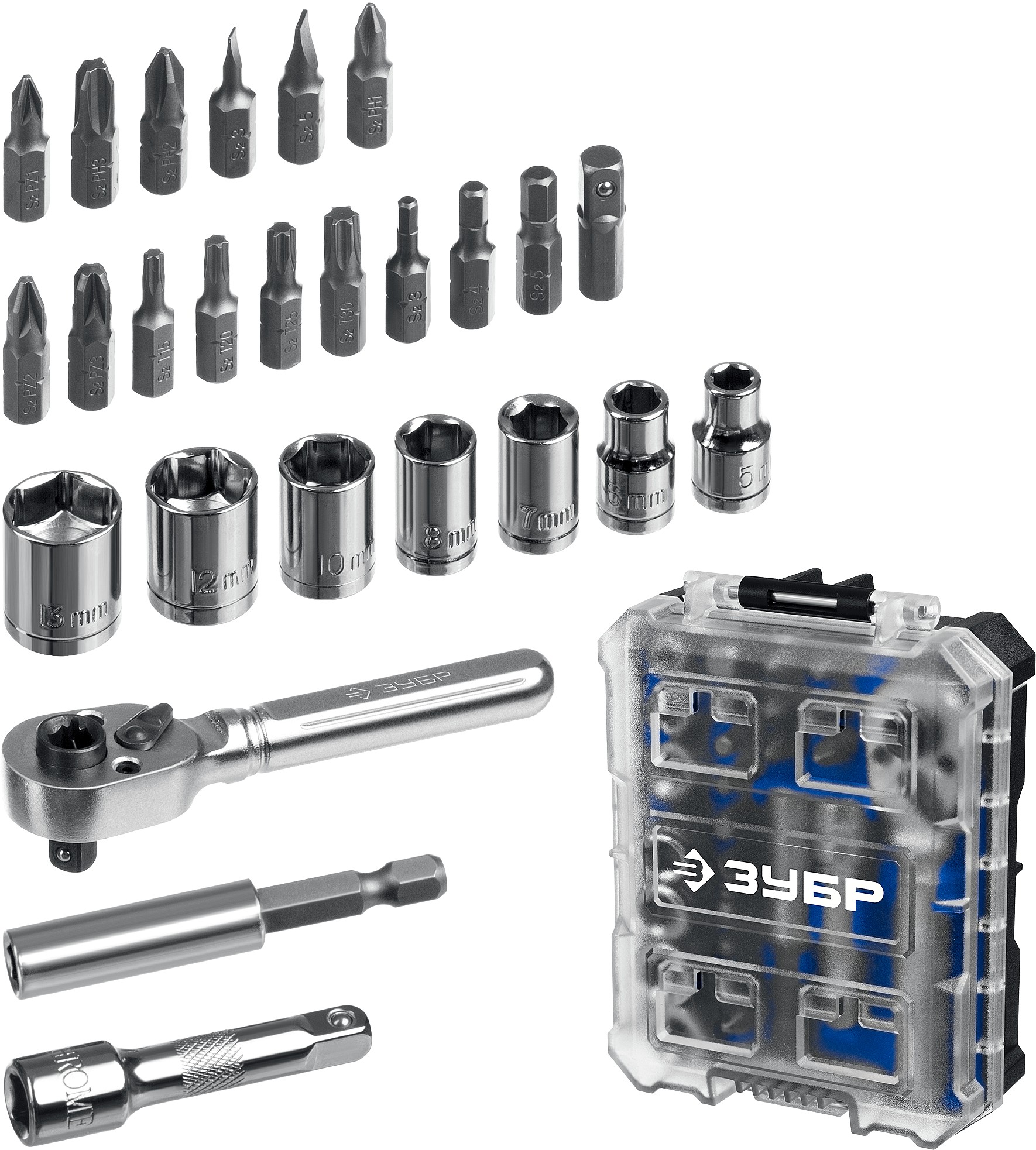 ЗУБР Компакт 34 предм., система стыковки Z-БОКС, набор: отвертка с насадками, Профессионал (25173)