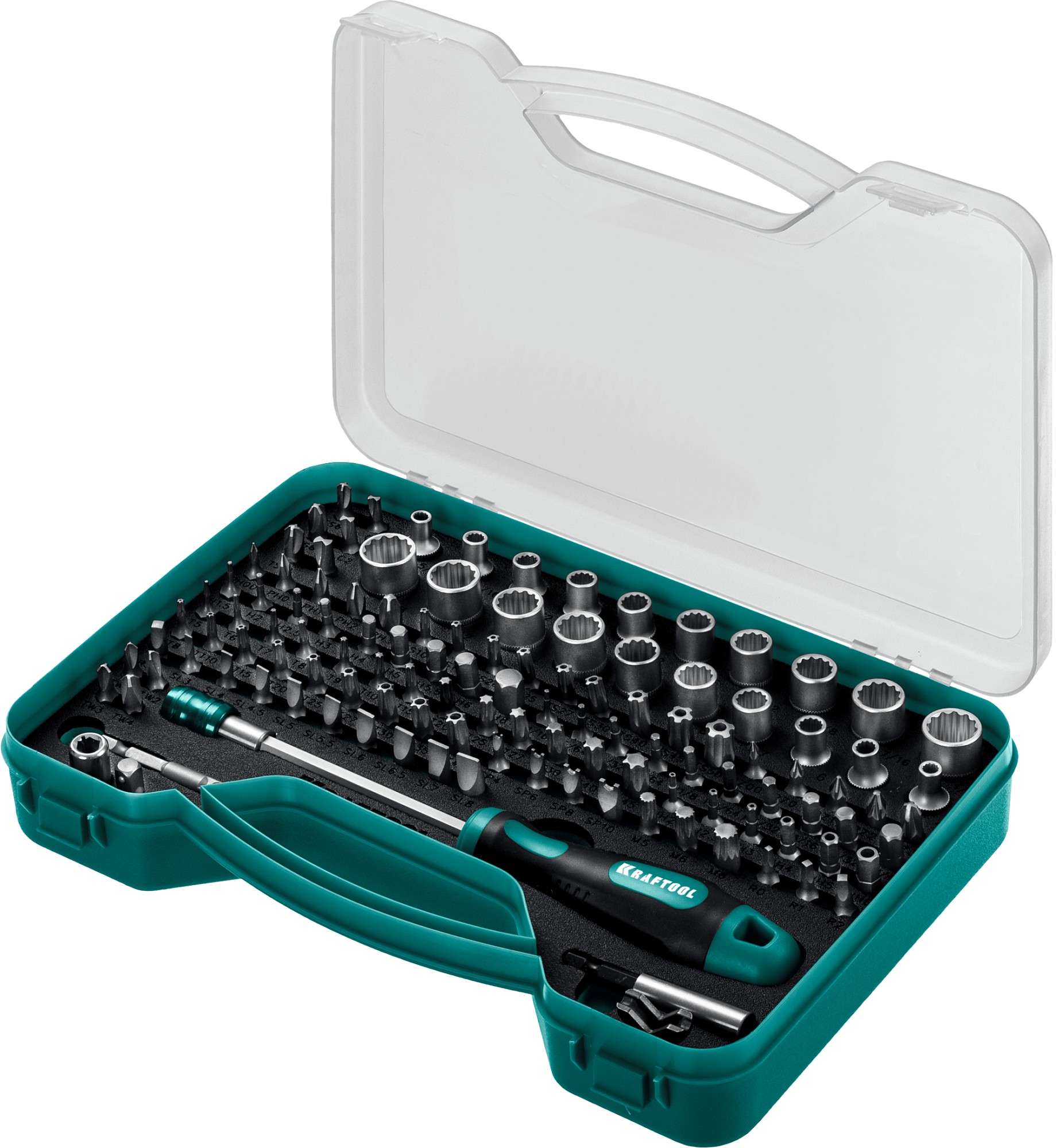 KRAFTOOL X-Drive-122, 122 шт, набор: отвертка-битодержатель с насадками (26816)