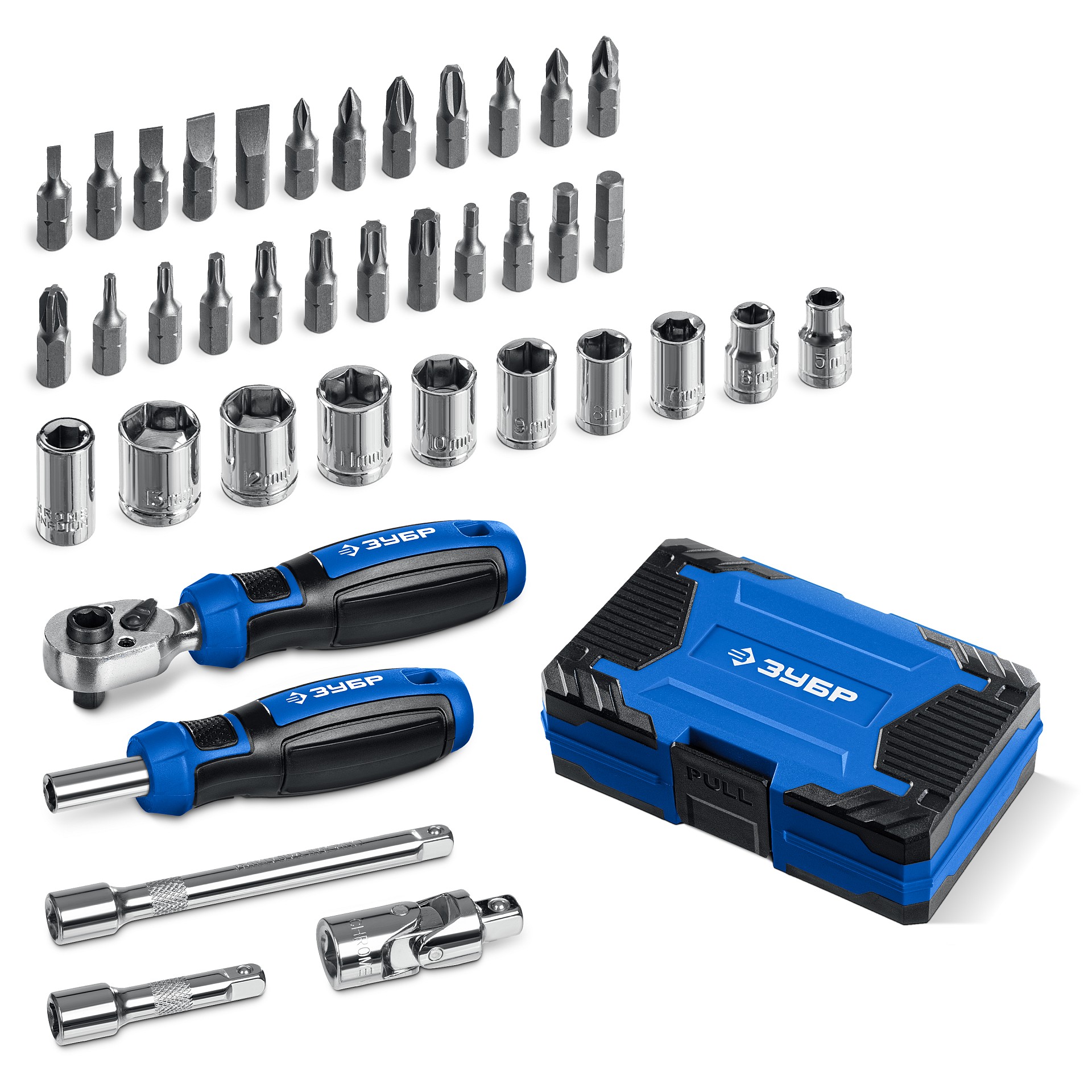 ЗУБР Профессионал-39 набор 39 шт: трещетка, отвертка-битодержатель с насадками (25180)