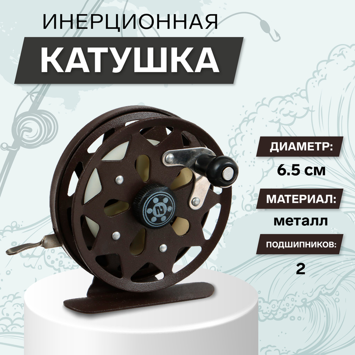Катушка инерционная, металл, 2 подшипника, диаметр 6.5 см, цвет темно-коричневый, TL65A