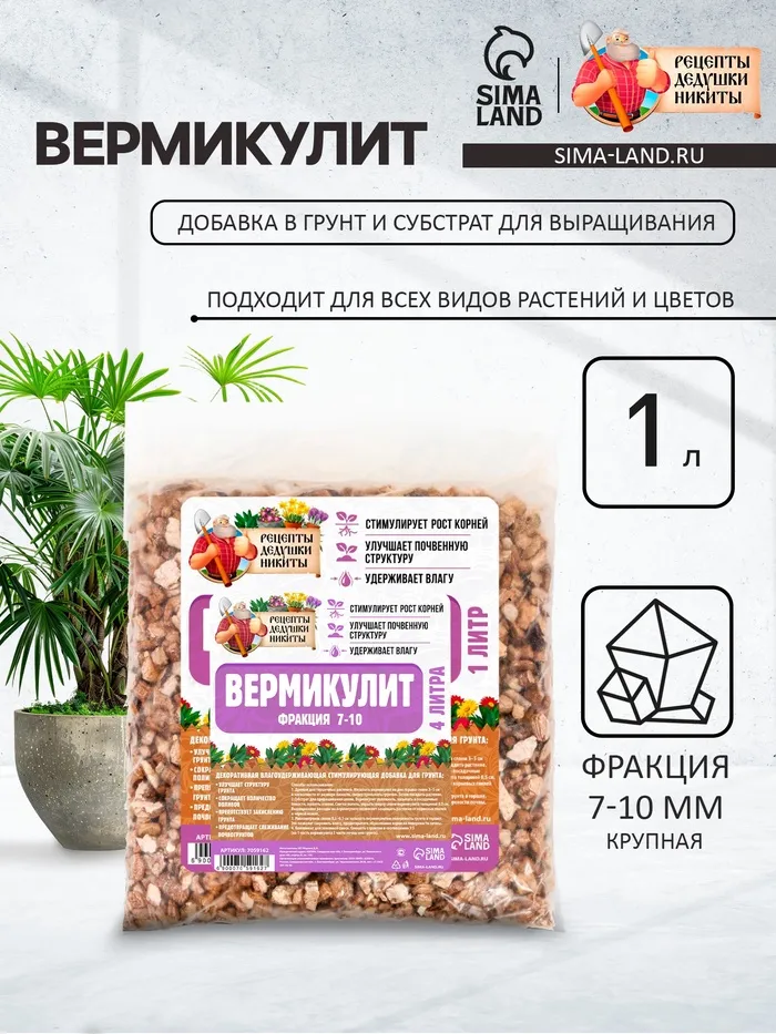 Вермикулит «Рецепты Дедушки Никиты» для растений, почвоулучшитель, фр 7-10, 1 л.