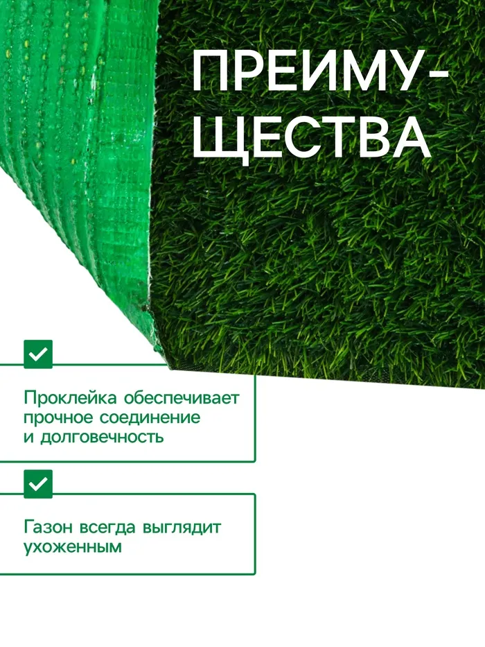 Газон искусственный, с проклейкой, ворс 5 см, 2×25 м, зелёный, Greengo