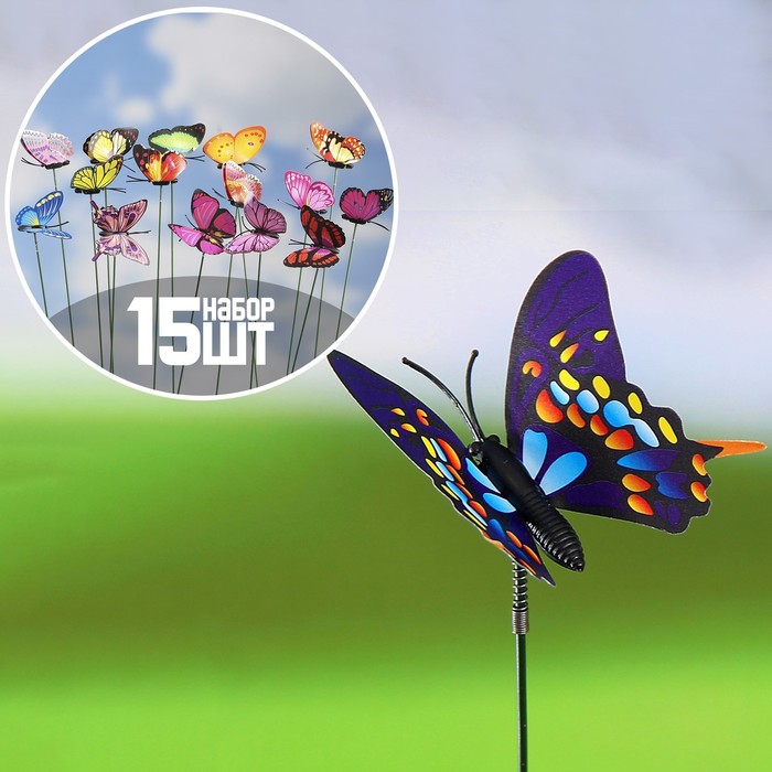Штекер «Бабочка Атрис», 7×7 см/30 см, набор 15 шт., МИКС