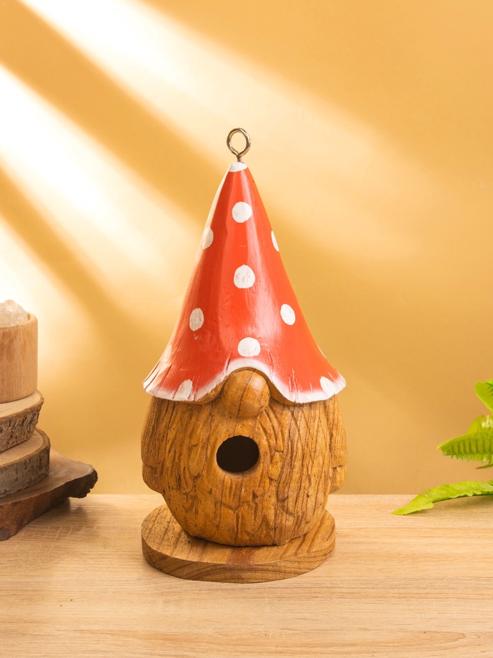 Скворечник подвесной "Гномик в красной шляпе" дерево Джампинис 14х14х26 см