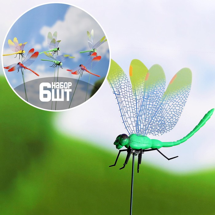 Штекер «Стрекоза Сенди», 14×9 см/45 см, набор 6 шт., МИКС